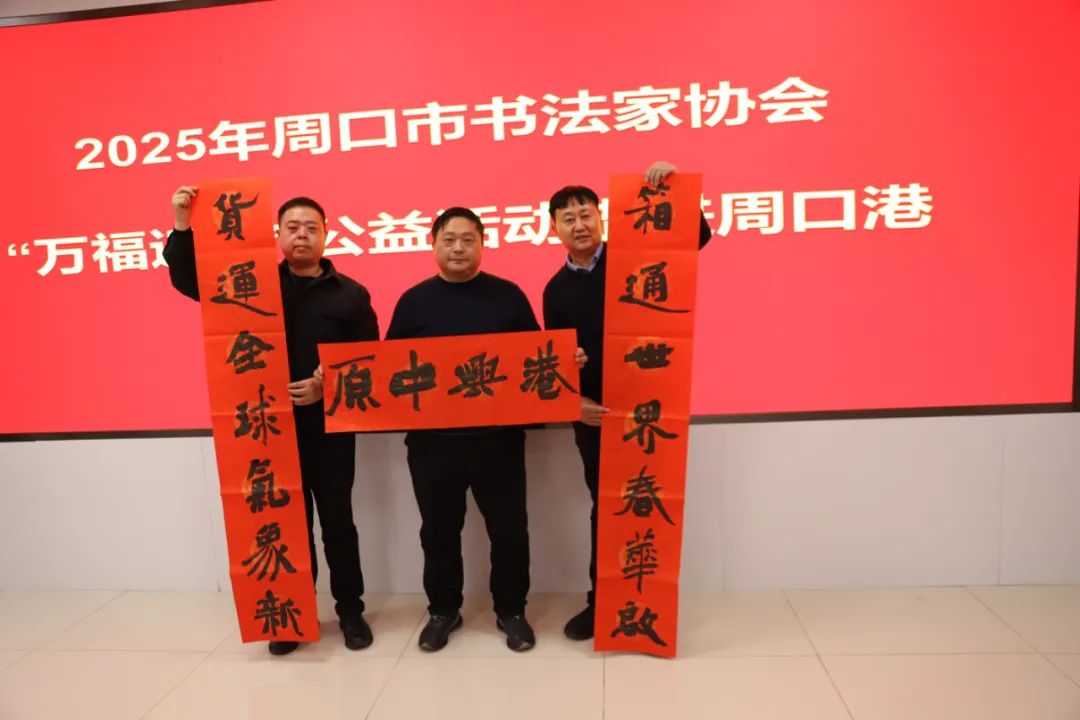 1月25日,新春佳节即将来临之际,周口市书法家协会“万福迎春”公益活动走进周口港范营作业区,通过义写春联,送“福”字的方式,为船民和码头工作人员送去新春祝福。