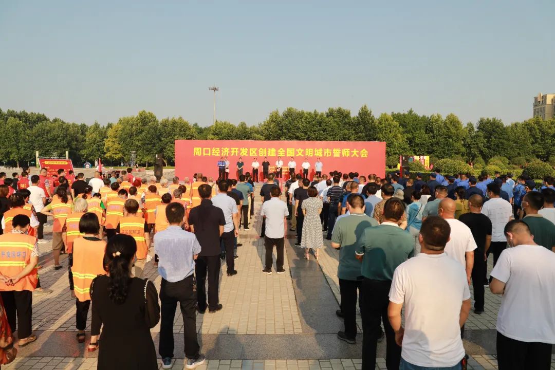 誓师大会上,太昊路办事处、淮河路办事处、城市管理稽查大队和公用事业管理中心负责同志分别作表态发言;区机关党委负责同志宣读《创建全国文明城市志愿服务倡议书》,与会人员在“创建全国文明城市 争做道德文明使者”签名墙签名,全体人员庄严宣誓:“文明创建,从我做起,主动参与,不畏困难,为民服务,争创一流,为建设‘道德名城,魅力周口’作出积极贡献!”