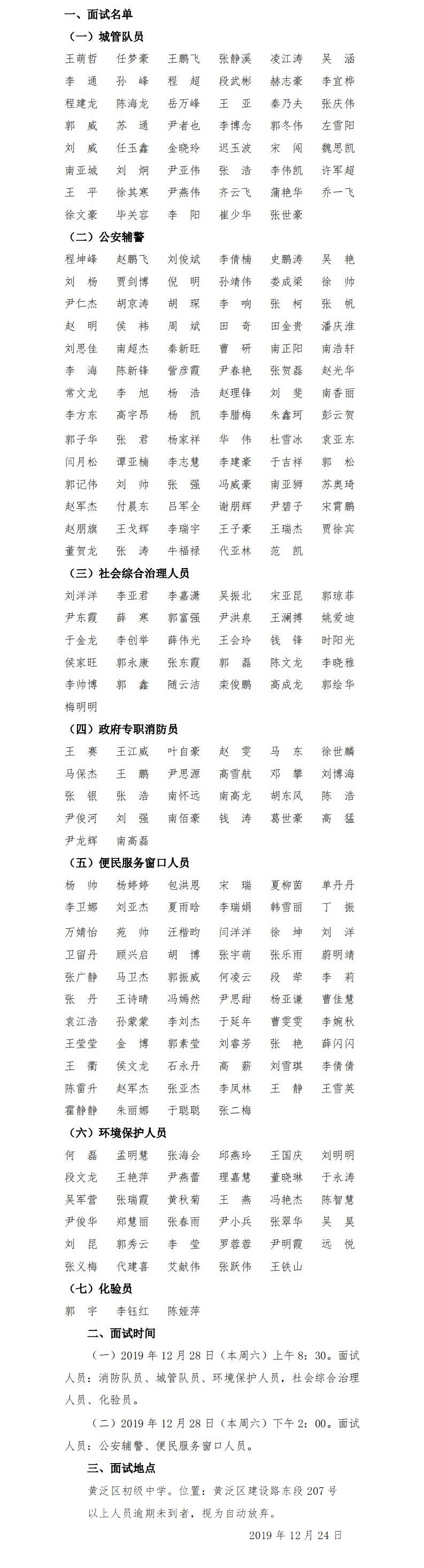 周口经济开发区招聘黄泛区政府购岗人员面试公告