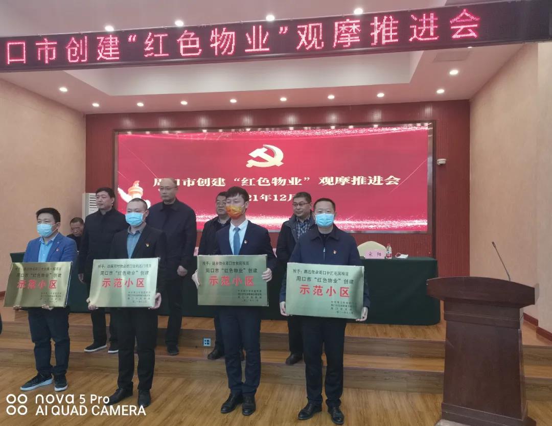12月15日上午,在周口市创建"红色物业"观摩推进会上,开发区太昊路办事处鼎兴物业大兴第一城项目、鹏达物业中汇花园项目被市委组织部、市住建局、市民政局联合命名为"周口市红色物业创建示范小区"。此次表彰为我市首次表彰挂牌,共表彰命名4个创建示范小区,开发区占2个小区。