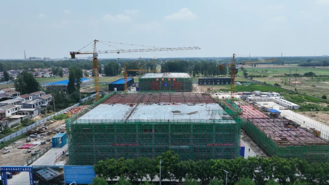 今年以来,周口临港开发区牢固树立“项目为王”理念,全力以赴抢时间、抓进度,推动重点项目建设全面提速提质。近日,鑫丰生物经济产业园总建筑面积约1.8万平方米的两栋制剂车间顺利封顶。